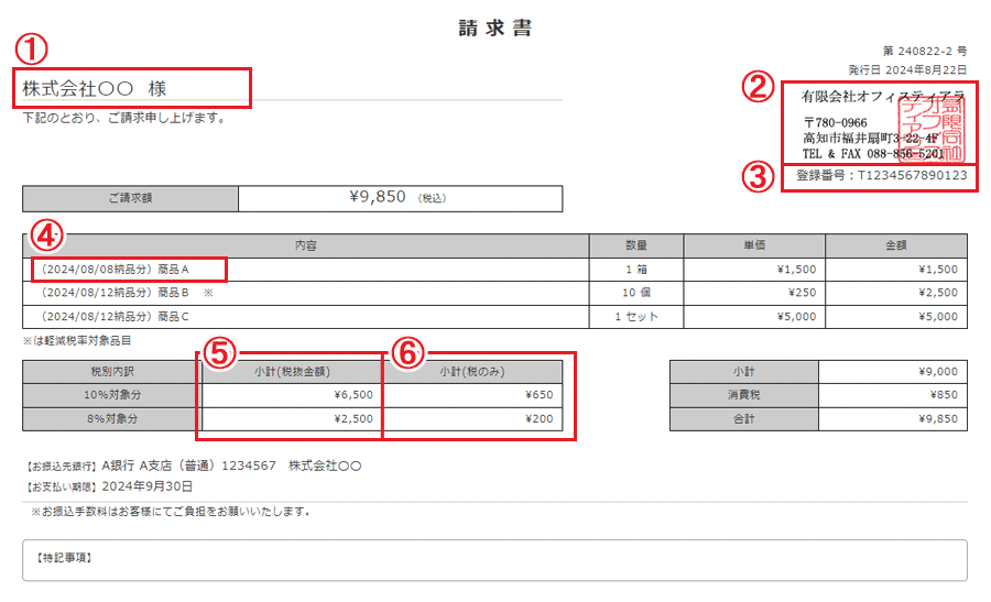 5.税率ごとの合計額の自動集計および適用税率の記載